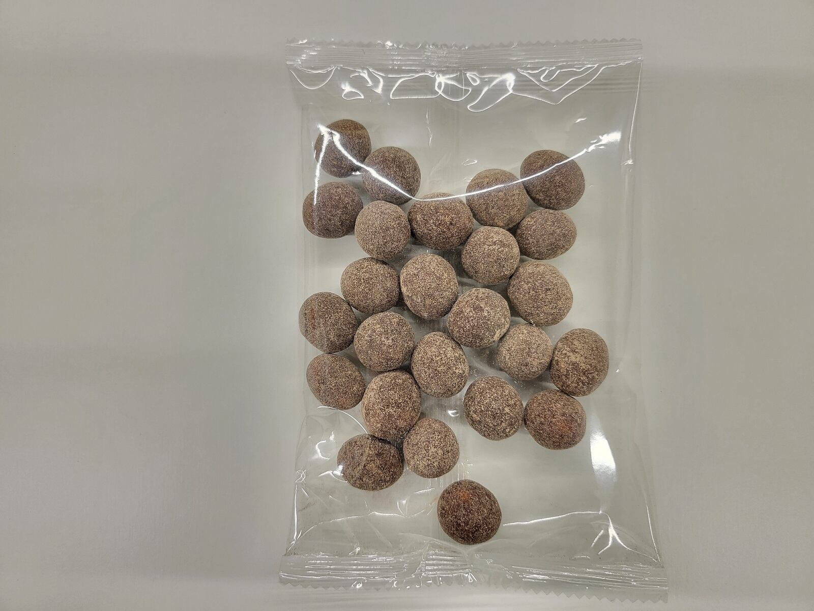 チョコレートをココアで包んだ流星の岩石のかけらにも見えなくもない??美味しいココアボール。中には落花生が入っています。